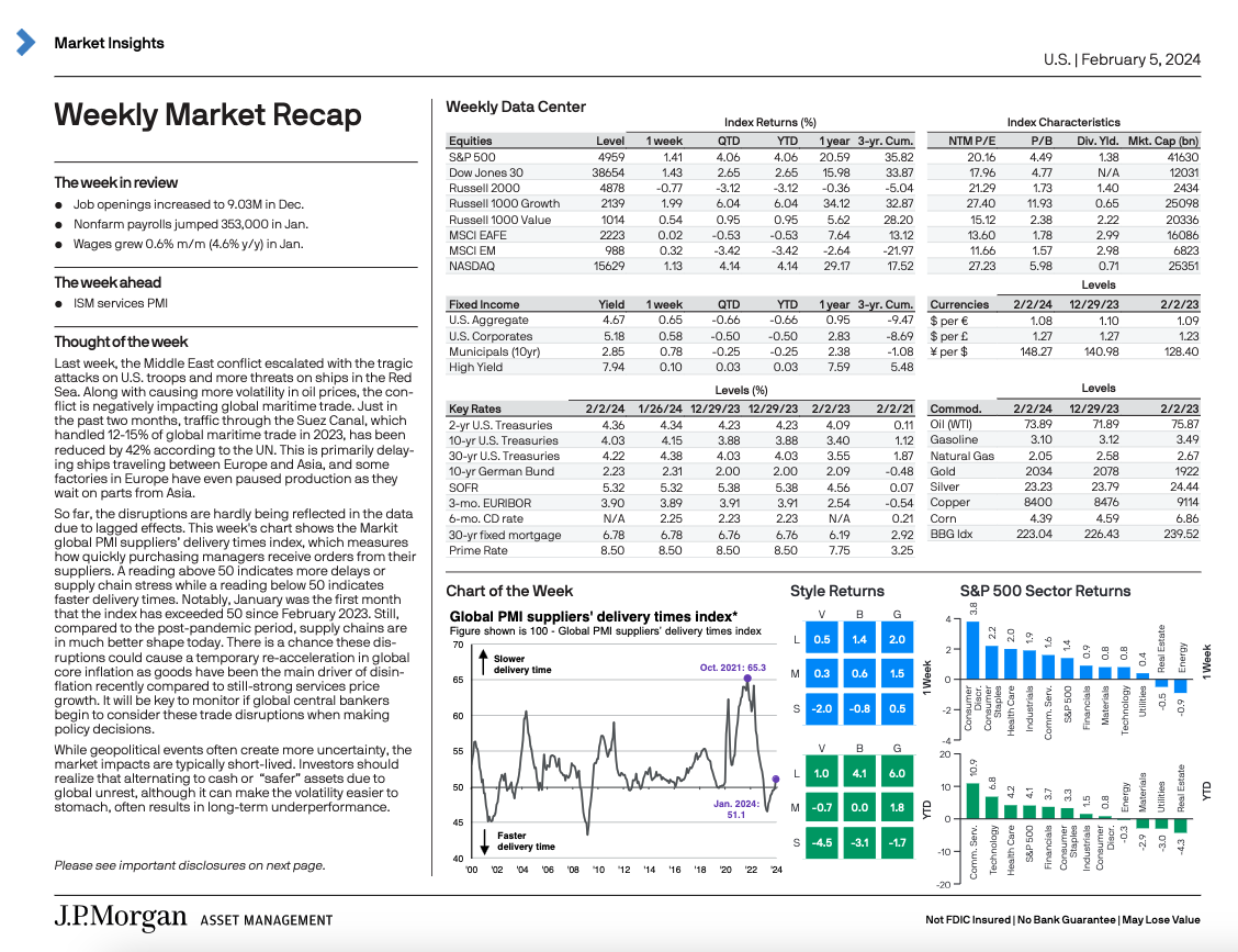 A look back at the financial markets over the past week and a look ahead at key economic developments this week.