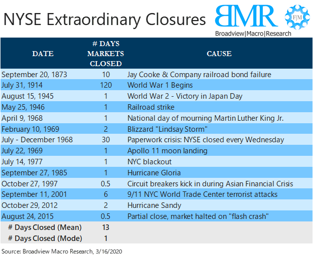 In short, after weeks of policy disappointments, investors are eagerly awaiting some catalyst to quickly stop the bleeding and potentially set the stage for a move higher in the markets. While it’s very well possible that market closures could take place in the weeks ahead, their importance as a signaling mechanism suggest such an outcome would be a last resort among a number of other tools.