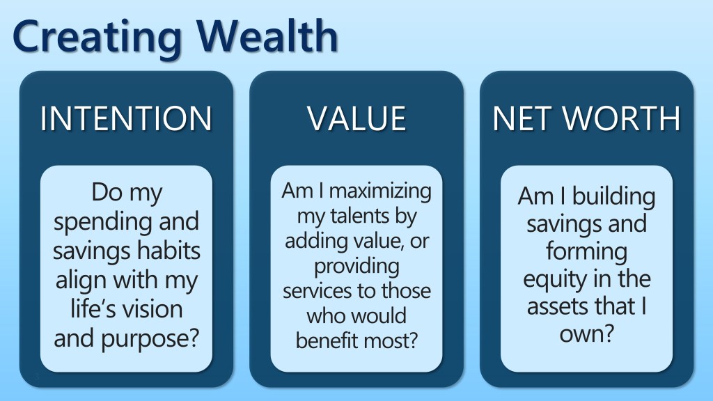 From this vantage point, we can see that the way in which money flows through your hands represents the physical manifestation of your closely held intentions. That’s pretty deep, right? Well, the point here is not to wax philosophical but to drive home a crucial point: creating wealth is ultimately rooted in the plan or purpose you lay out for your life. Consequently, you can limit your wealth creation ability when you spend or manage money in a manner that is not in alignment with your life priorities.