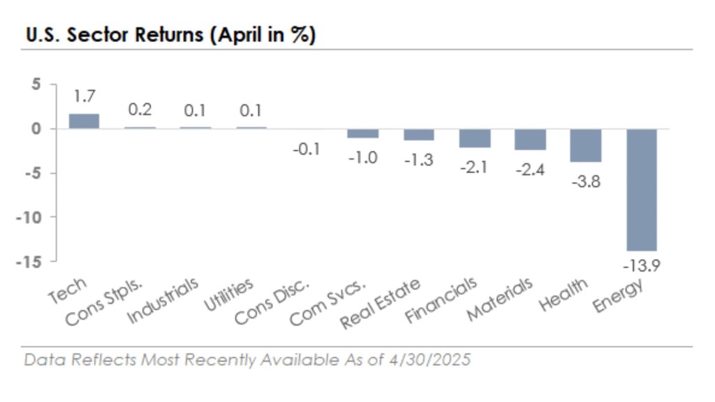 The decline in Treasury yields caused bonds to trade higher. Longer-maturity bonds outperformed due to their higher sensitivity to falling interest rates, while shorter-maturity bonds underperformed. This outperformance extended to corporate bonds, where investment-grade outperformed high-yield as the combination of falling interest rates and credit spread tightening produced gains.
