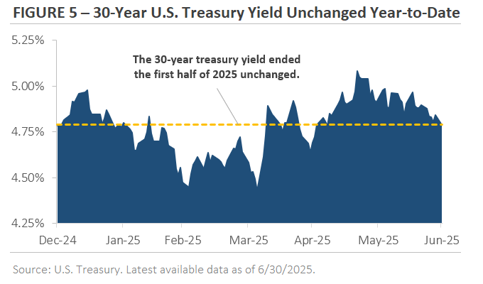 Artificial intelligence continued to be a top market theme during the quarter. Figure 3 shows technology-related investment grew +14% year-over-year in Q2, the second consecutive quarter and the fastest pace since the late 1990s. The spending is tied to the AI industry buildout, with billions being spent on high-performance computer chips, cloud architecture, data center construction, and the power and cooling needed to run it all.