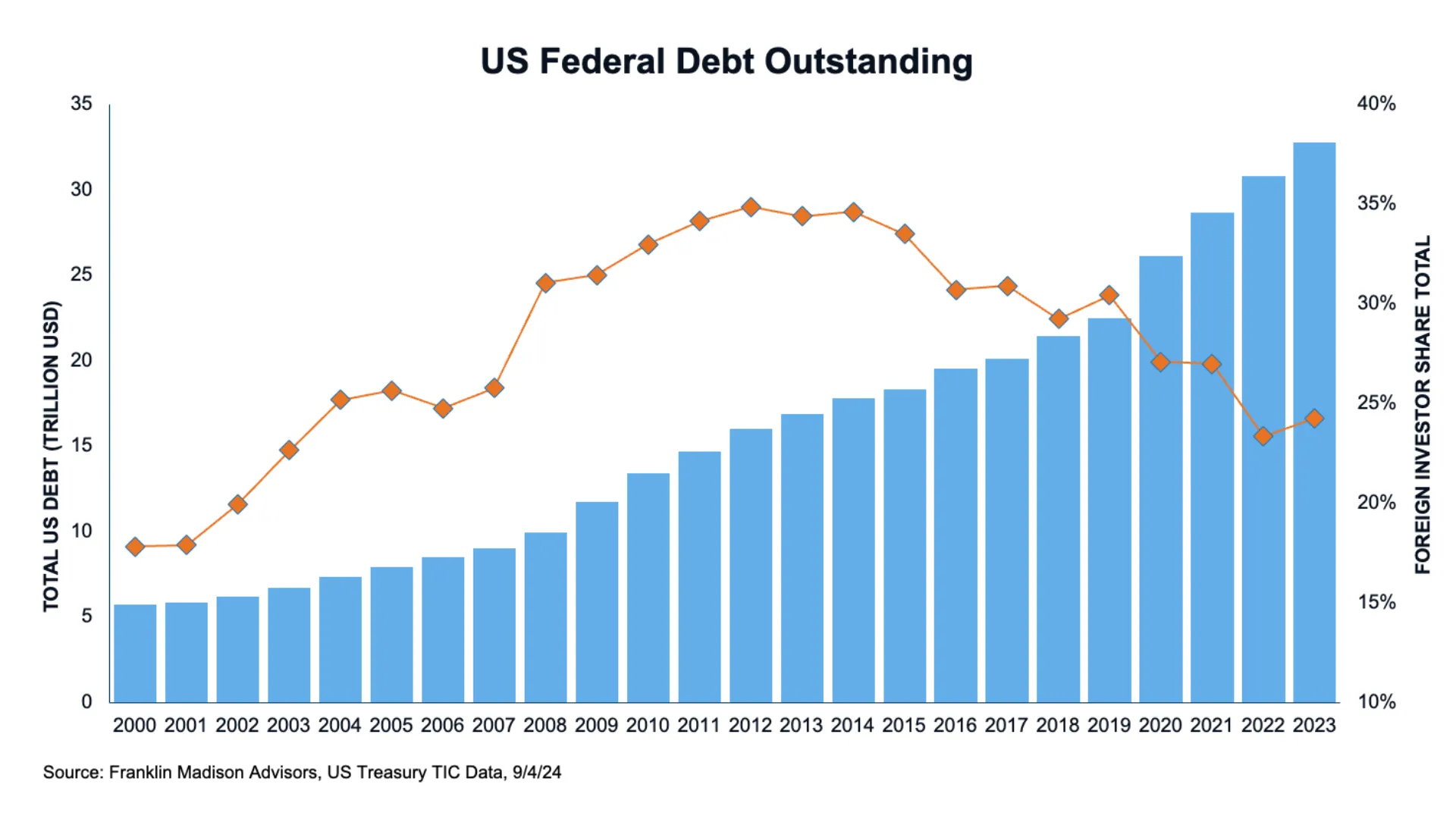 Did you know that nearly a quarter of all US government debt outstanding is held by foreign investors?